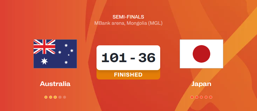 下半场,澳大利亚队继续火力全开,轰出47分,最终101-36狂胜日本队,取得一场65分优势的大胜。